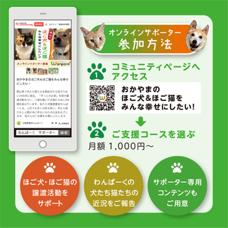 ネット上で犬猫愛護会わんぱーくへのご支援していただけるオンラインサポーター。